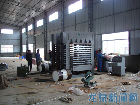 鑫源木业是八都镇招商引资引进的一家专业生产精细木工板的企业,目前,该企业正在紧张地进行准备工作,争取4月中旬正式开工投产,图为工人在安装设备。