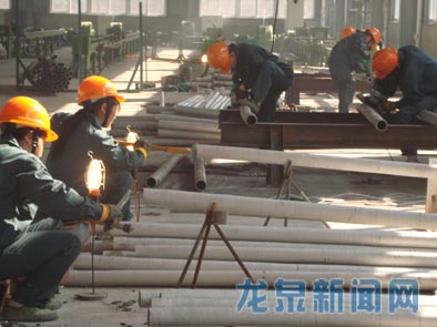 石达石金岗工业园区一期园区内的浙江银隆不锈钢有限公司自今年正月初八投产以来,产销状况良好。2月份,公司在安装检修生产设备的同时,仍出产100多吨不锈钢制品。3月份以来,走出磨合期的企业加班加点赶订单,已生产出了300多吨成品。图为工人们正在进行不锈钢管毛坯抛光抛内孔操作。见习记者 项吴菊 摄影报道