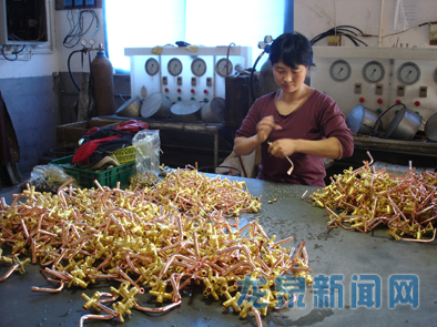 位于茶丰五金汽配园的浙江金丰机械设备公司是专业生产家用空调、汽车空调配件的企业,产品除销往国内市场外还出口美国、德国和东南亚等地,今年1—3月实现产值892万元,比去年同期增长37.6%。记者 吴向东 摄影报道