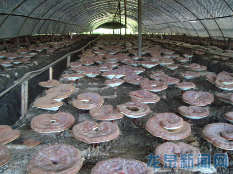 近年来我市灵芝生产发展很快,产量已经达到4000多立方米,从事生产和销售近一万人。图为龙泉佳宝生物科技公司灵芝生产基地。