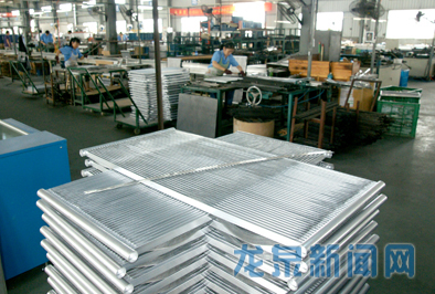 浙江创新汽车空调有限公司是一家以外贸为主的生产企业,专业从事汽车空调配件的科研、生产及销售,年销售额达9000余万元,其中出口金额1000多万美元。主要产品有汽车空调层叠式蒸发器、平行流冷凝器和管带式冷凝器、管路接头、干燥瓶、膨胀阀等共500多个种类。图为公司生产车间。记者 吴向东 摄影报道
