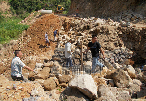 道太乡把推进康庄工程建设与水毁道路灾后重建有机结合起来,加快推进康庄工程建设步伐。图为该乡沈际村村民在修复水毁康庄路。
