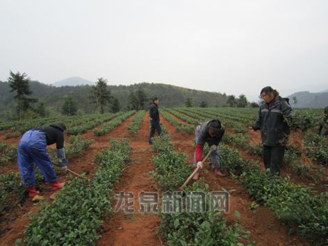 八都镇章府会土地开发项目基地由浙江昴山茶叶有限公司承包,现在,基地内种满了“金观音”茶树,长势良好。据了解,去年该基地亩产收入就达1000余元。图为工人在补种茶树。