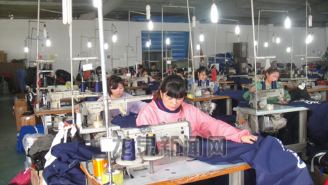 每年的10月份到次年的3月份是太阳伞生产旺季,浙江能福旅游用品有限公司今年12月份到明年4月份接到订单总值1000多万美元,公司800多名工人正在抓紧赶工。图为缝纫车间女工缝制太阳伞布料。