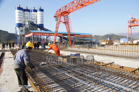 龙庆高速龙泉段一标段预制场施工人员在预制高架梁板