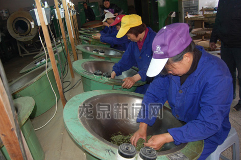 春暖花开,春茶勃发。3月初以来,我市各茶叶基地茶叶相继开采,茶农、茶叶企业又开始了新一年的忙碌。图为金福茶业有限公司茶叶加工车间。记者 王苏珍 摄影报道