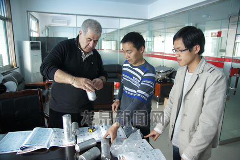 市广龙汽车空调配件有限公司自2006年开始在网上销售产品以来,赢得了国内外客户的信赖,每年网上销售额都在200万美元以上,出色的网上销售助推了企业的快速发展。图为黎巴嫩客商在广龙公司考察。