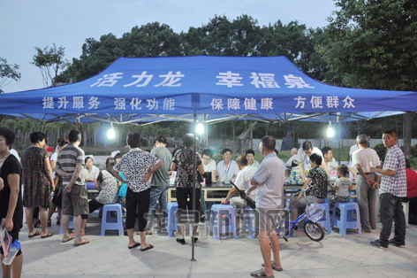 8月8日,我市3个街道社区卫生服务中心在各自辖区同时启动了“活力龙 幸福泉”健康服务活动。该活动将持续一个月时间,内容包括健康教育、保健辅导、义诊和随访建档等,为社区低保户和残疾人提供部分免费药品。图为剑池街道社区卫生服务中心活动现场。 见习记者 兰玲 通讯员 蓝涛 摄影报道