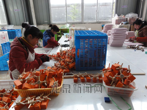 浙江恒祥玩具有限公司专业生产积木、拖车等木制玩具,产品种类达2000余种,远销美国、欧洲、日本等国家和地区,从年初至今已接到订单近千万元。图为工人正在组装玩具。记者 杨欢婷 摄影报道