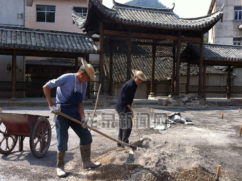 住龙镇住溪村红色文化广场建设工地上一片繁忙的景象