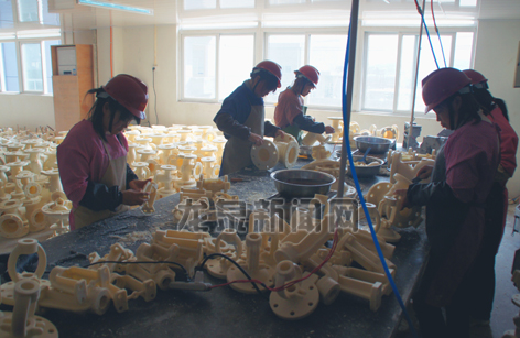 安仁溪东区块鸿业阀门厂女工在制作阀门蜡模