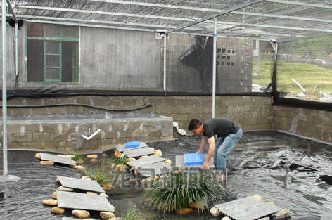 近日,浙江九重天蛙业有限公司与浙江大学动物科学学院合作开发的石蛙养殖精品园项目落户上垟镇木岱村。项目首期投资1000余万元,共投放了3000对种蛙、10万只幼蛙。见习记者吴婷 通讯员龚荣芬 柳金平 摄影报道