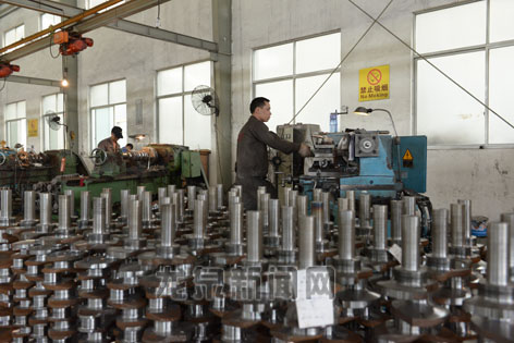 浙江伟林机械零部件有限公司是一家专业制造挖掘机发动机锻钢曲轴的国家高新技术企业。目前已形成年产不同系列曲轴型号30余种,其耐磨性、韧性和疲劳强度都优于国外同类产品,完全能替代进口产品,填补了国内挖掘机发动机锻钢曲轴生产的空白。图为公司生产车间。记者 吴向东 摄影报道