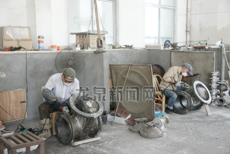 浙江华星阀业有限公司工人正在进行阀门磨光