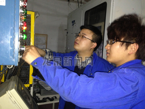 熟练技师指导新招聘员工使用机器