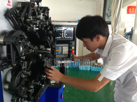浙江毅力汽车空调有限公司加快推进“机器换人”,倒逼产业结构由低端走向高端,进一步推动产业转型升级。近日,该公司专门向厂商定制了2台绕线设备,用于生产电阻产品中的电阻丝绕线工艺,该设备只要一名操作员,产量却是目前使用半工半自动设备的7倍。图为工作人员正在调试新设备。 见习记者 叶炜婷 摄影报道
