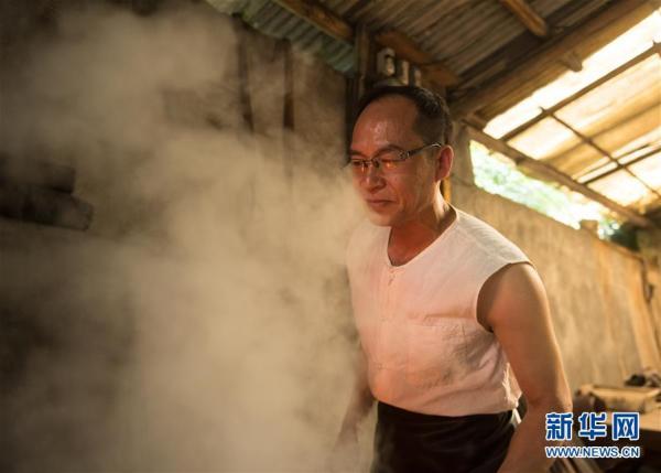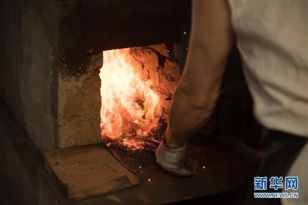 5月21日,郑国荣在“古越剑铺”炼制坯料。新华社记者翁忻旸摄
